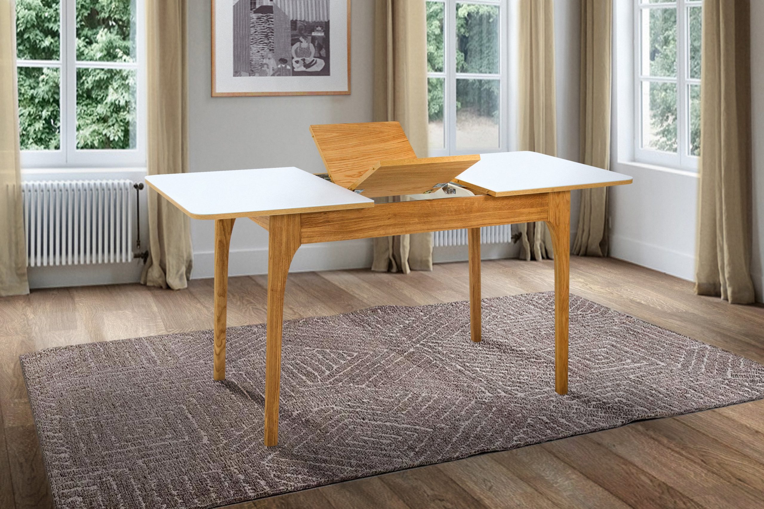 Стол со стеклянной столешницей Фиеста 110-150 см (белый/орех)