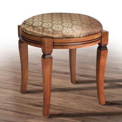 Банкетка Круглая деревянная орех светлый + патина (ткань Avilla 2/7)